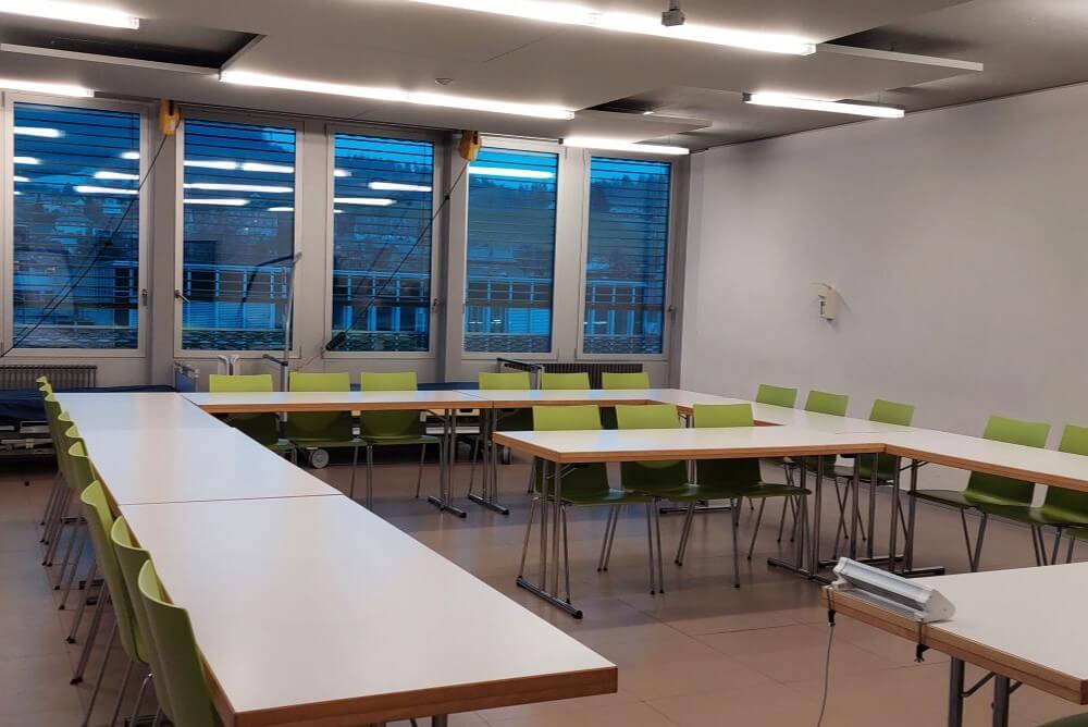 Kursräume der OdA Gesundheit Bern können von externen interessierten Personen oder Firmen gemietet werden. Dazu gehört auch die technische Ausstattung – Clevertouch-Grossbildschirme, Audiosystem – sowie Moderationsmaterial etc. Für Schulungen, Präsentationen, Vorträge, Seminare oder Workshops stehen unsere Räume verschiedener Grössen in Köniz, Bern zur Verfügung.